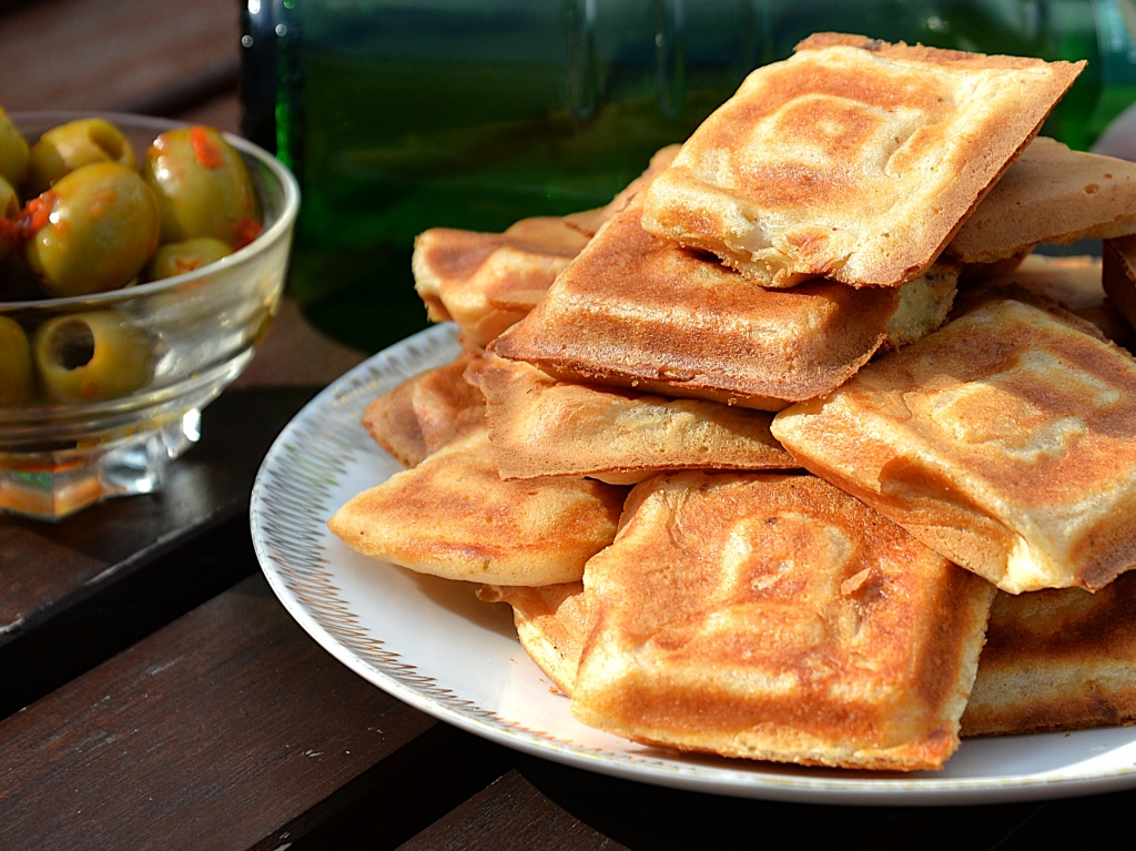 Progression : séparez blancs et jaunes d’œuf. Faites fondre le beurre. Mélangez-le à la farine, les jaunes d’œuf, sel, poivre, piment, oignons, féta émiettée et lait. Montez les blancs d’œuf en neige et incorporez-les délicatement à la préparation. Finissez par la levure. Faites chauffer le gaufrier et faites des petites gaufres. Laissez-les gonfler pendant 2 à 3 minutes. Il faut qu’elles se détachent facilement du gaufrier.