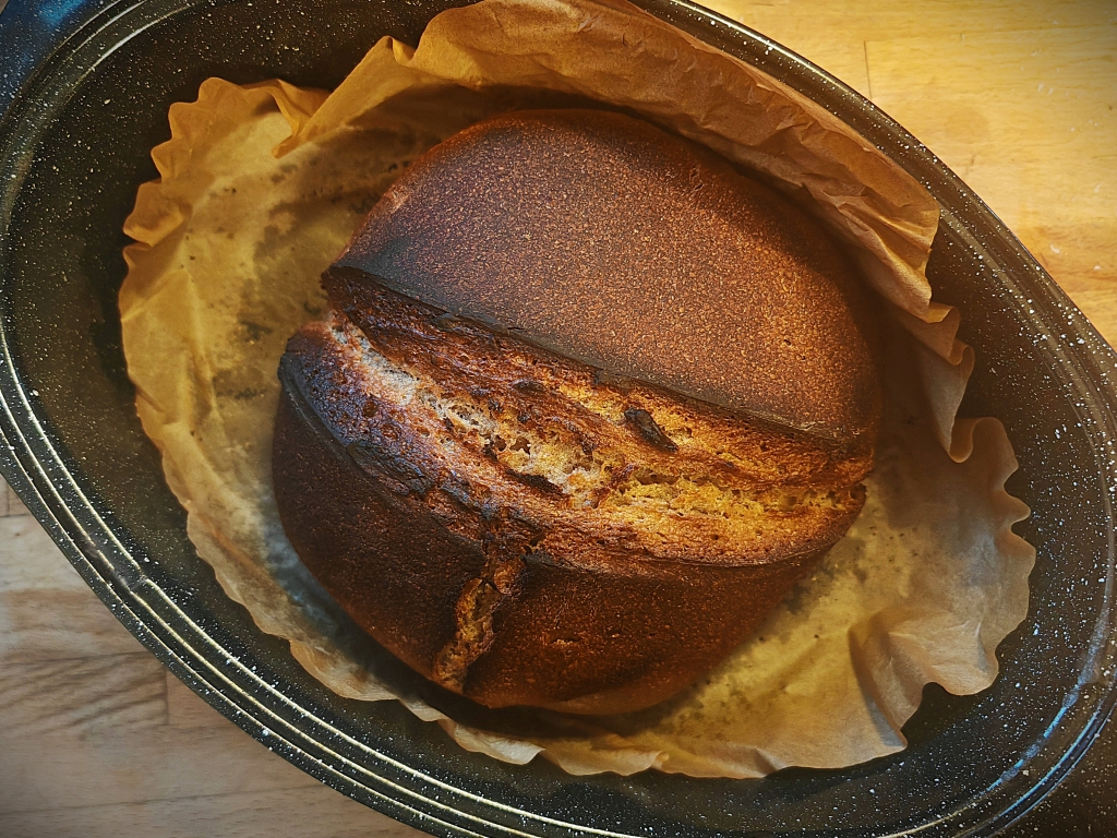 Votre pain est cuit quand vous lui « tapez le cul » et qu’il sonne creux. Si le son est encore mat, reposez le pain au four sur la grille pour le laisser cuire encore 5 minutes à découvert.